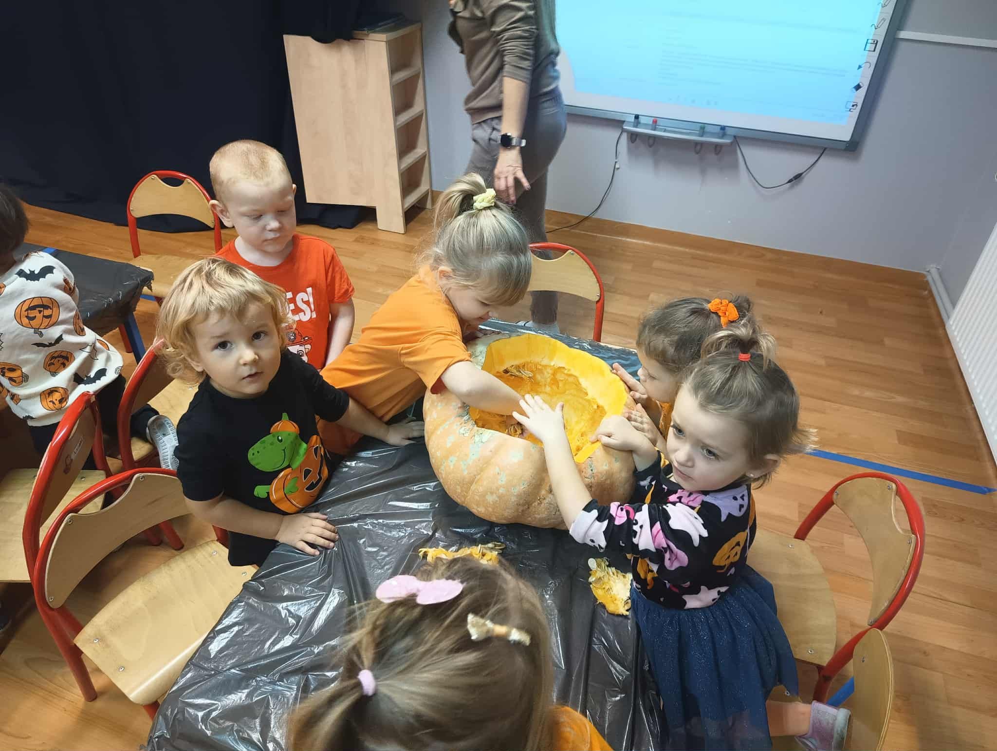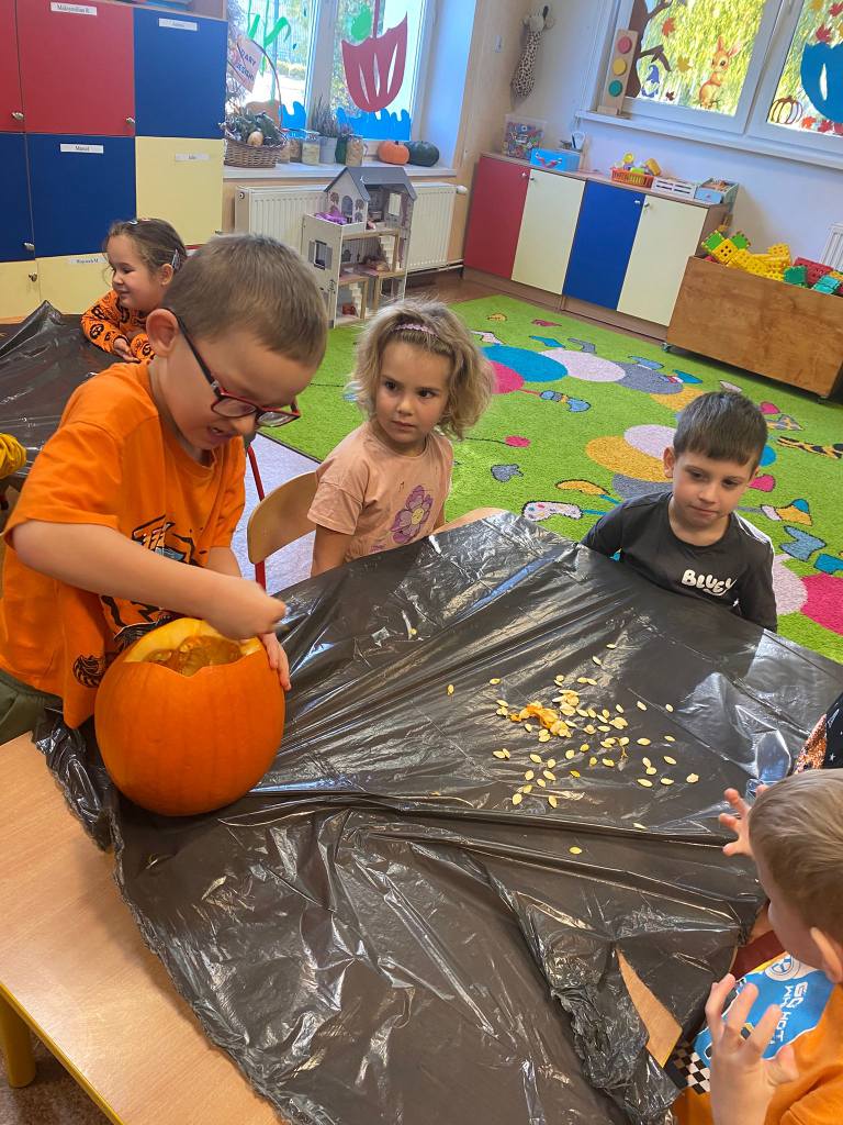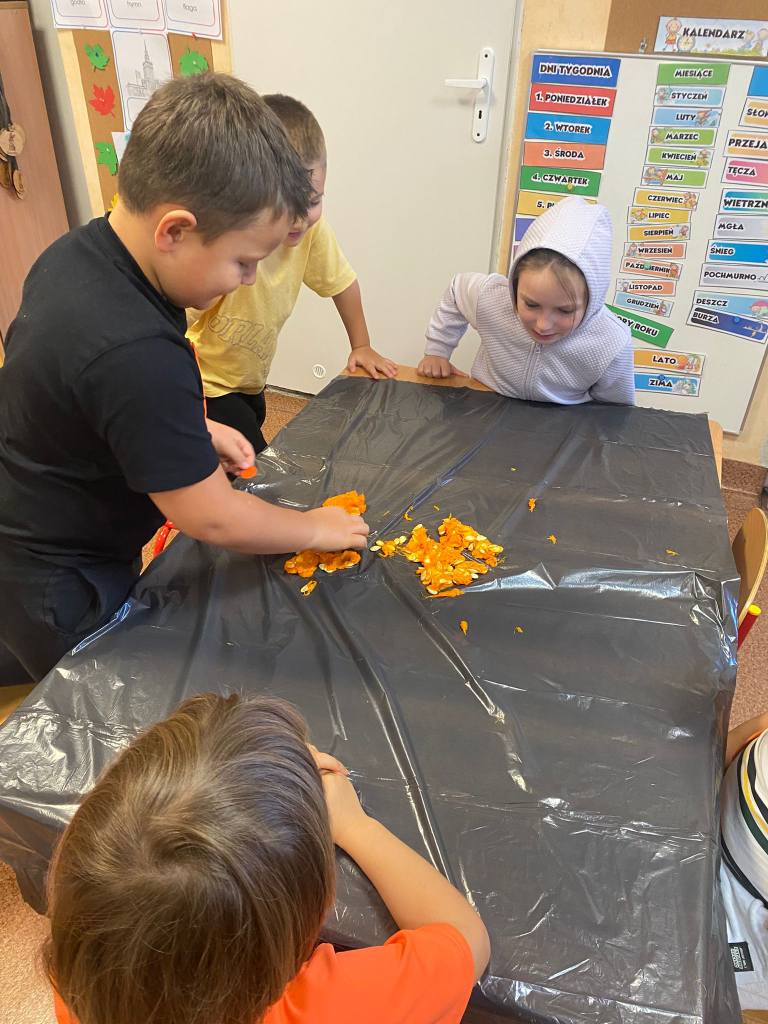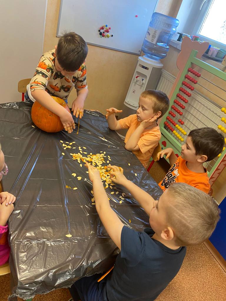 Dnia 31 października w przedszkolu było bardzo pomarańczowo i dyniowo. Z okazji wyjątkowego święta dzieci przyniosły dynie i ubrały się na kolor pomarańczowy. Dynia królowała ! Było wiele zabaw tematycznych, sportowych, dydaktycznych, sensorycznych, jesienne dekoracje.Wszystkie przedszkolaki spędziły ten dzień aktywnie z licznymi dyniowymi atrakcjami.