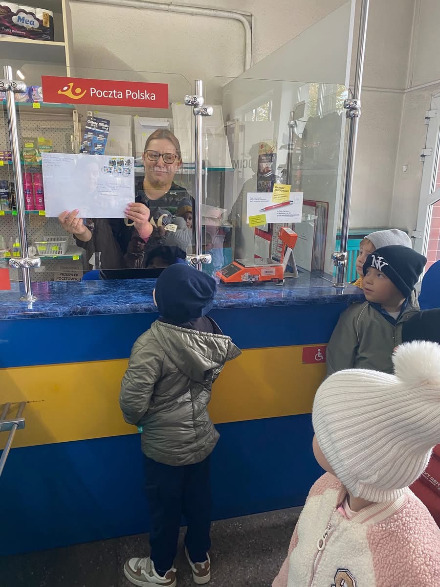 Dzieci poznały zadania jakie spełnia ten urząd, a także dowiedziały się jak ważna i odpowiedzialna jest praca listonosza. Przedszkolaki poznały logo poczty polskiej oraz drogę listu lub przesyłki zanim dotrą do adresata. Wizyta na poczcie była też okazją do utrwalenia nawyku kulturalnego zachowania się w miejscu publicznym.