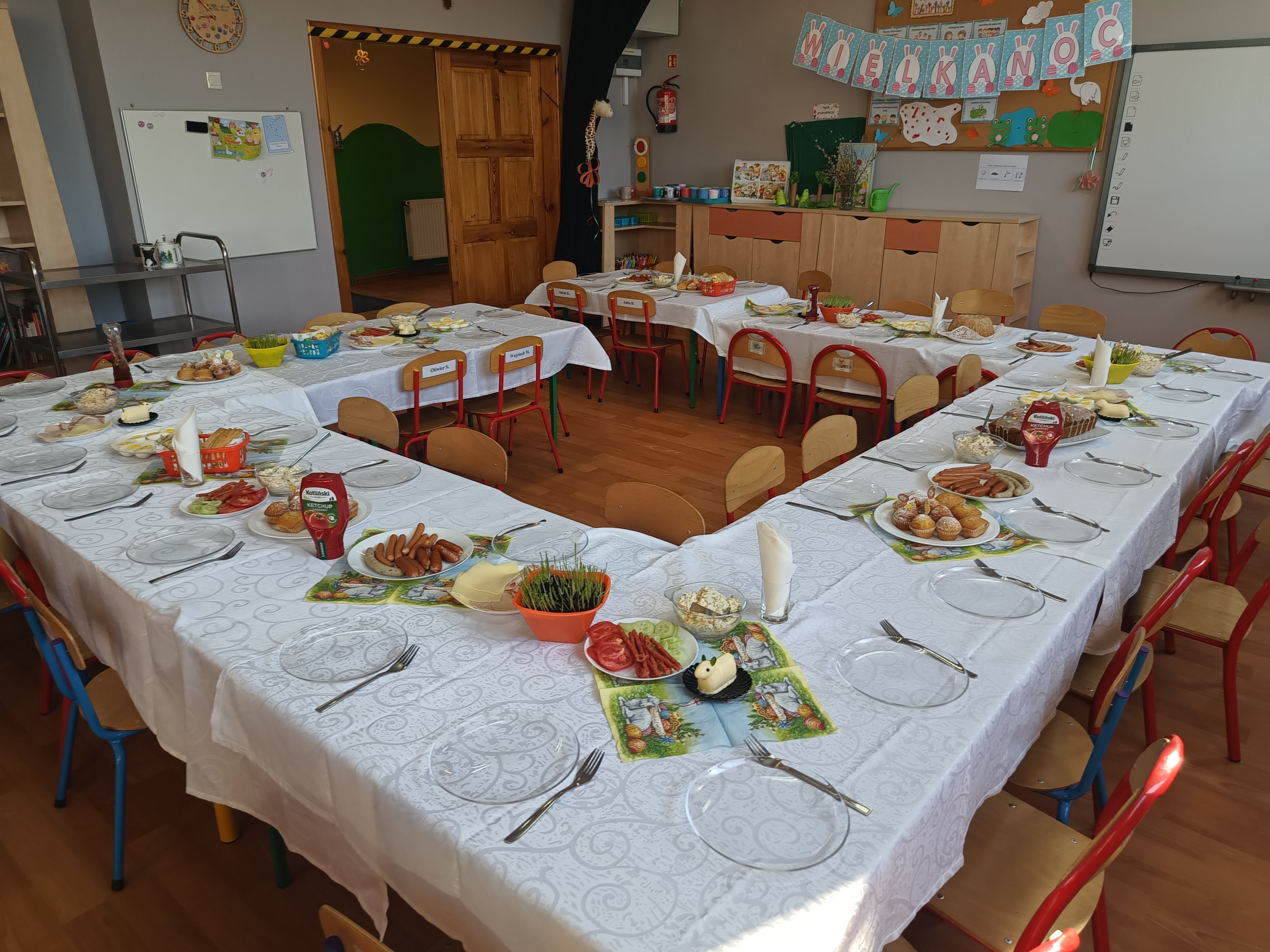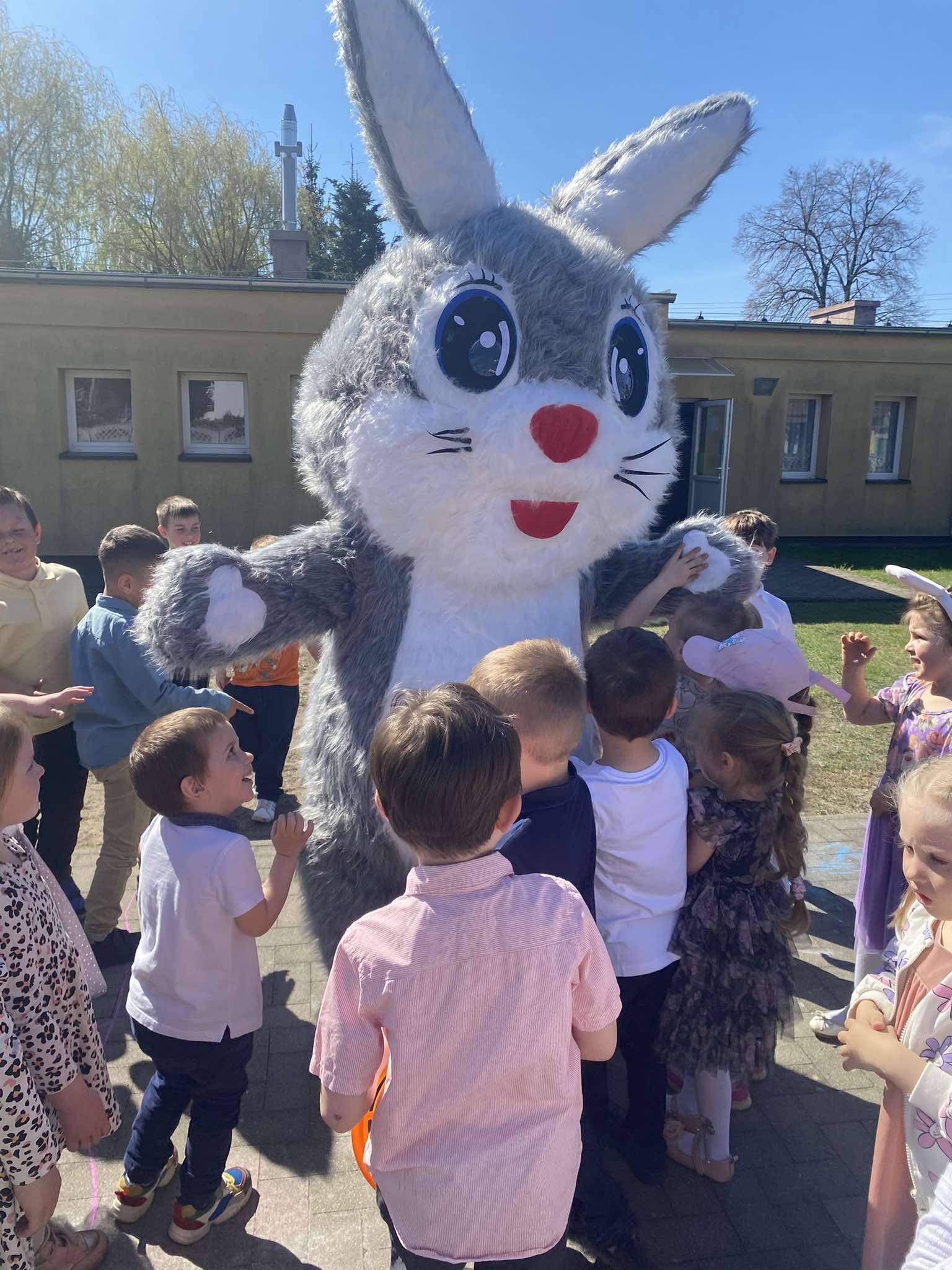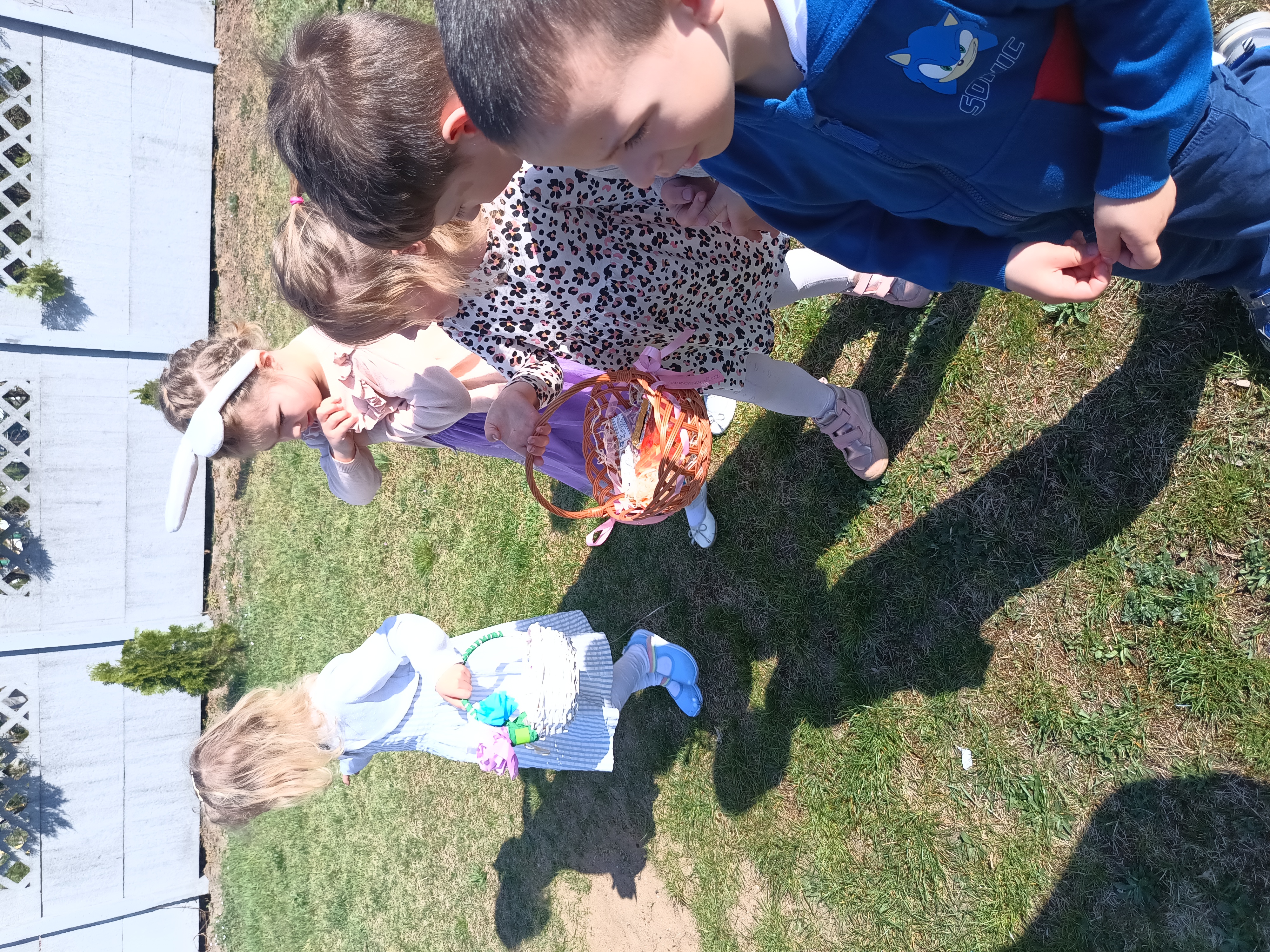 W dniu dzisiejszym "Wiewiórki" i "Zajączki", wychowawcy grup i pracownicy przedszkola zasiadły do wielkanocnego śniadanka przy pięknie zastawionym stole. Nie zabrakło jajek, kiełbaski, szyneczki, babki wielkanocnej.... Po śniadaniu dzieci wyruszyly na poszukiwania wielkanocnego zajączka i swoich koszyczków.