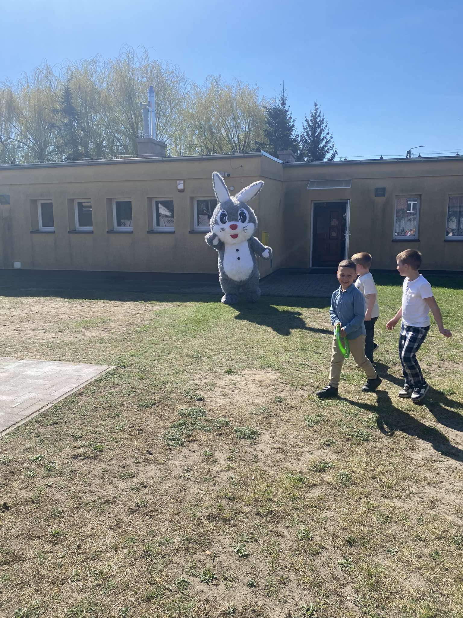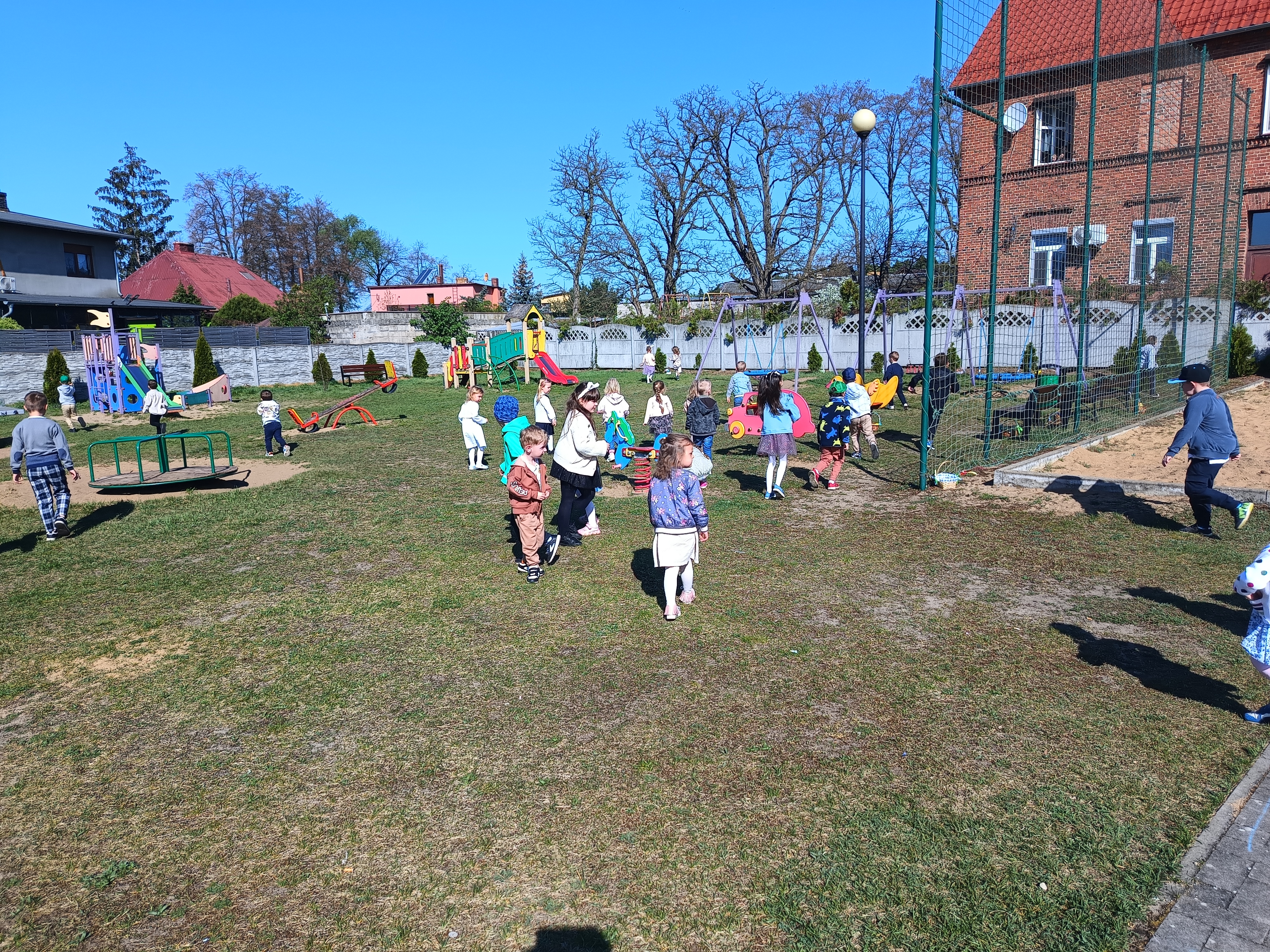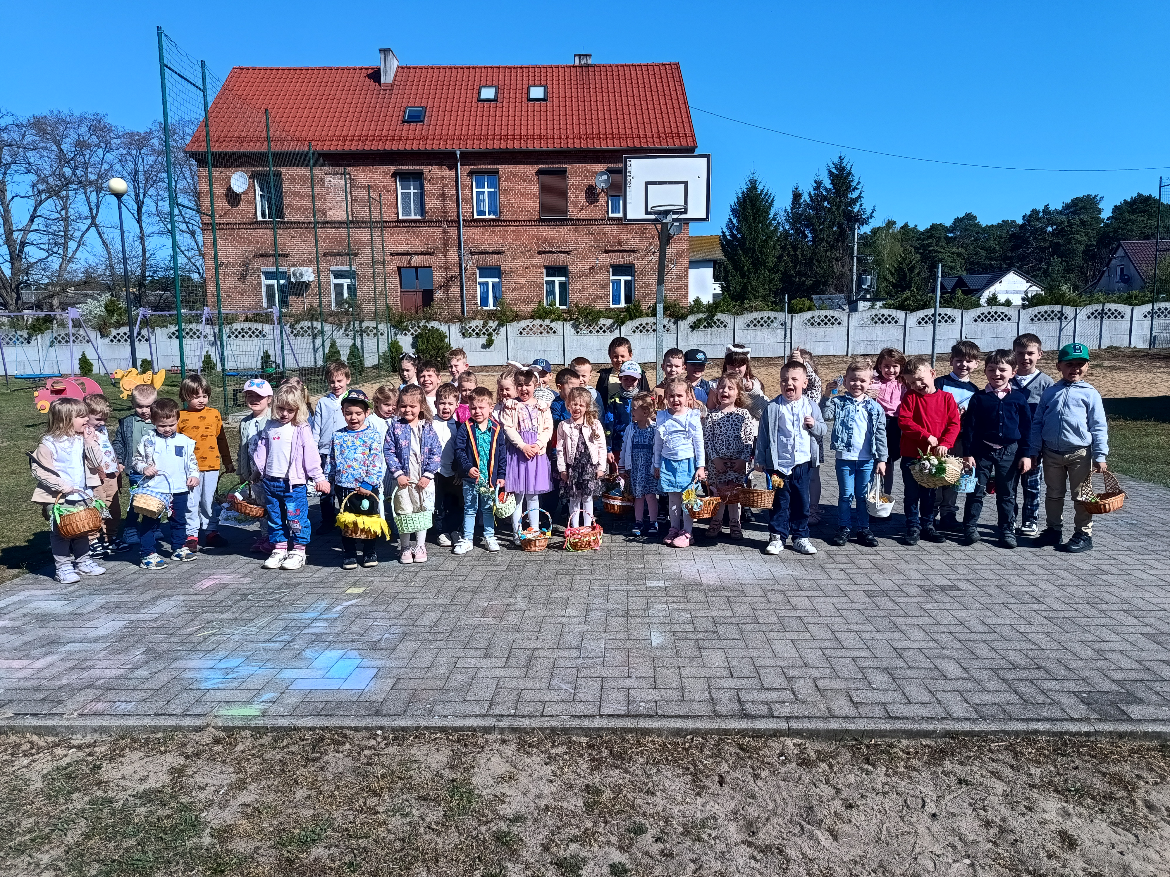 W dniu dzisiejszym "Wiewiórki" i "Zajączki", wychowawcy grup i pracownicy przedszkola zasiadły do wielkanocnego śniadanka przy pięknie zastawionym stole. Nie zabrakło jajek, kiełbaski, szyneczki, babki wielkanocnej.... Po śniadaniu dzieci wyruszyly na poszukiwania wielkanocnego zajączka i swoich koszyczków.